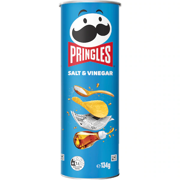 Pringles Salt & Vinegar flavour chips 134g can.